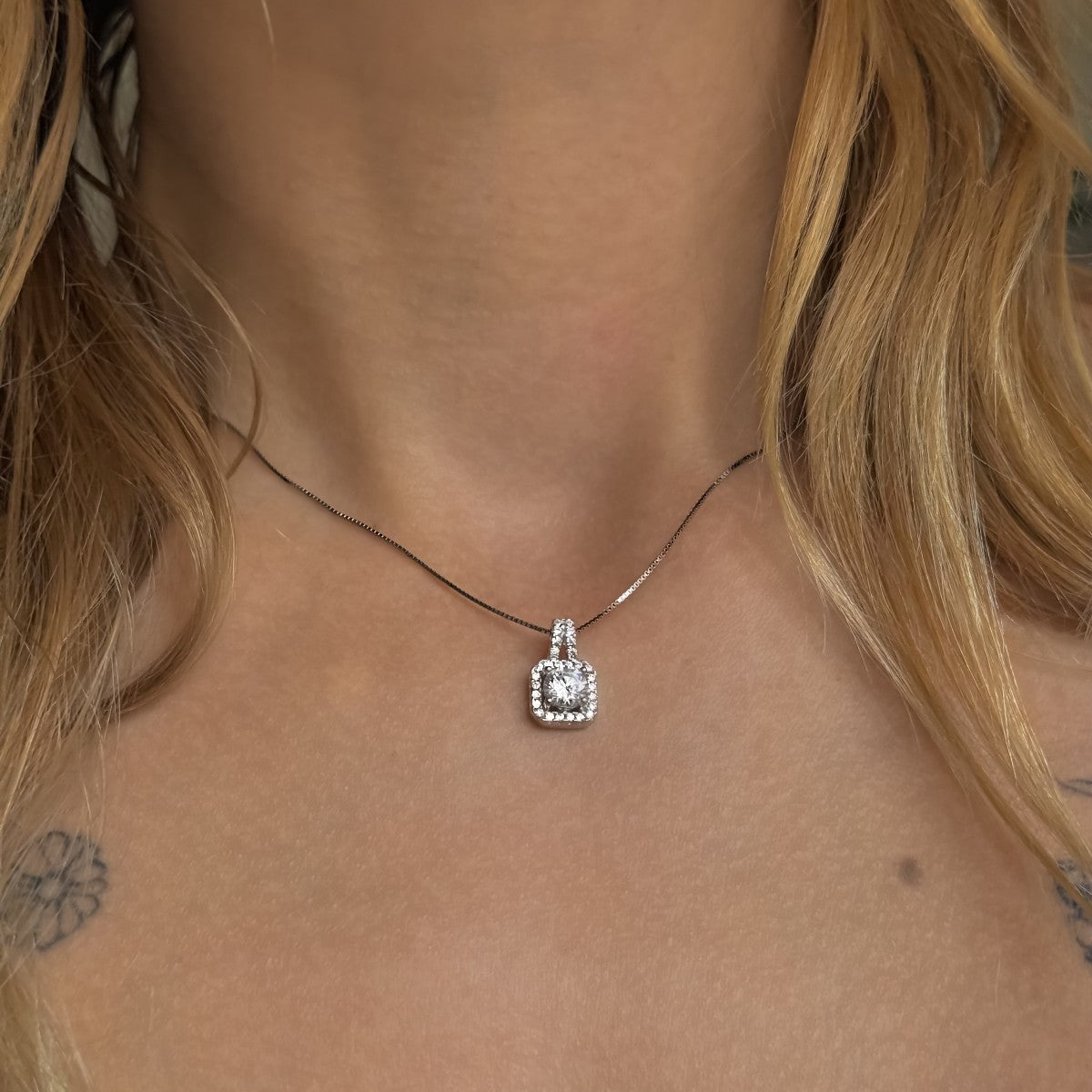 Sidabrinis rodžiuotas pakabukas su cirkoniu ir grandinėle