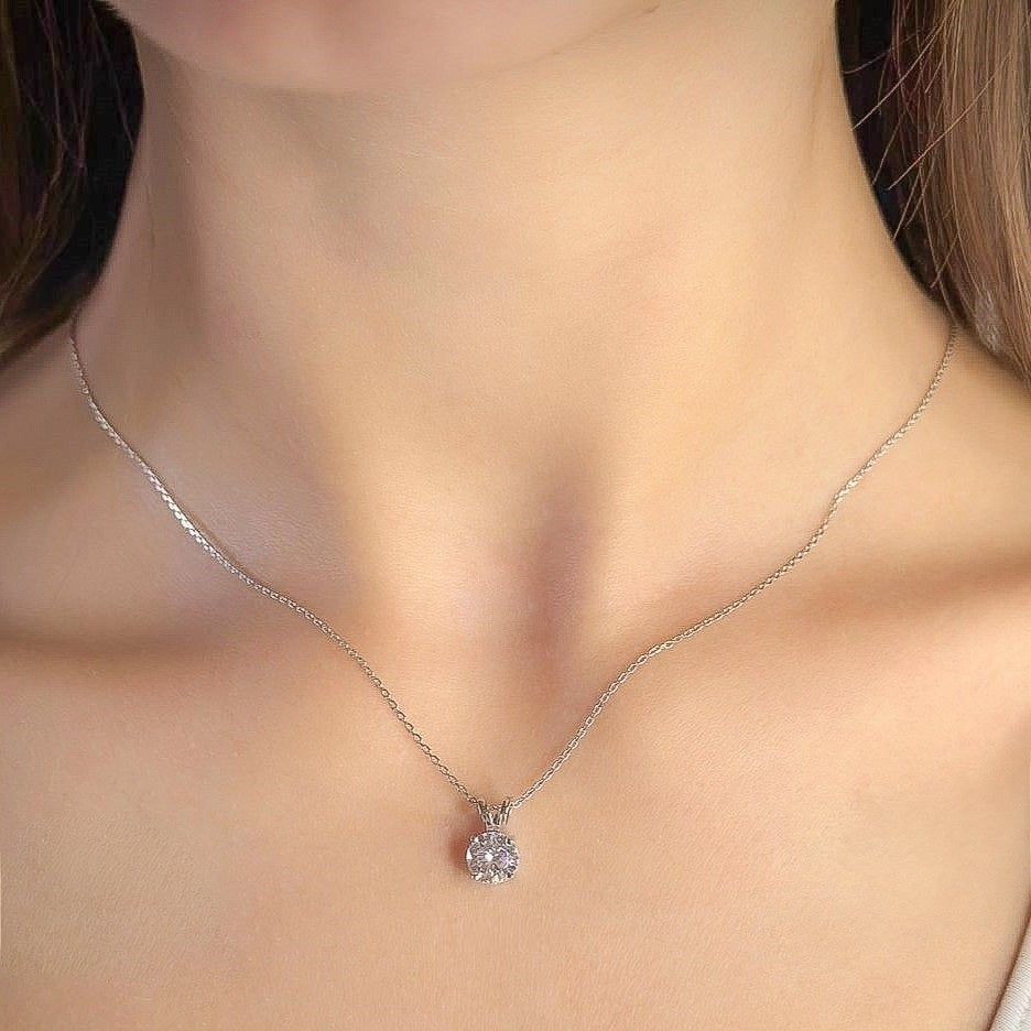 Sidabrinis rodžiuotas pakabukas su cirkoniu ir grandinėle
