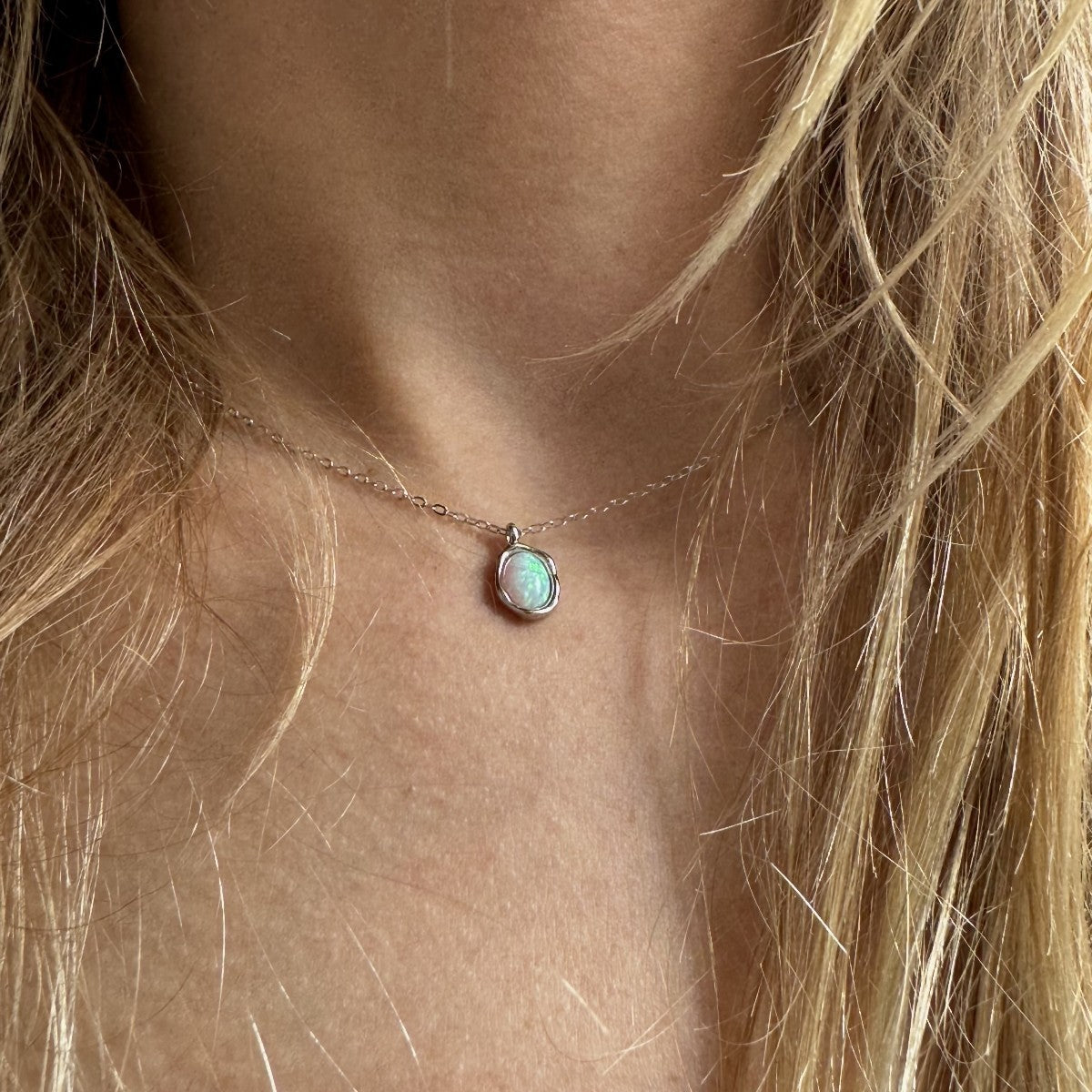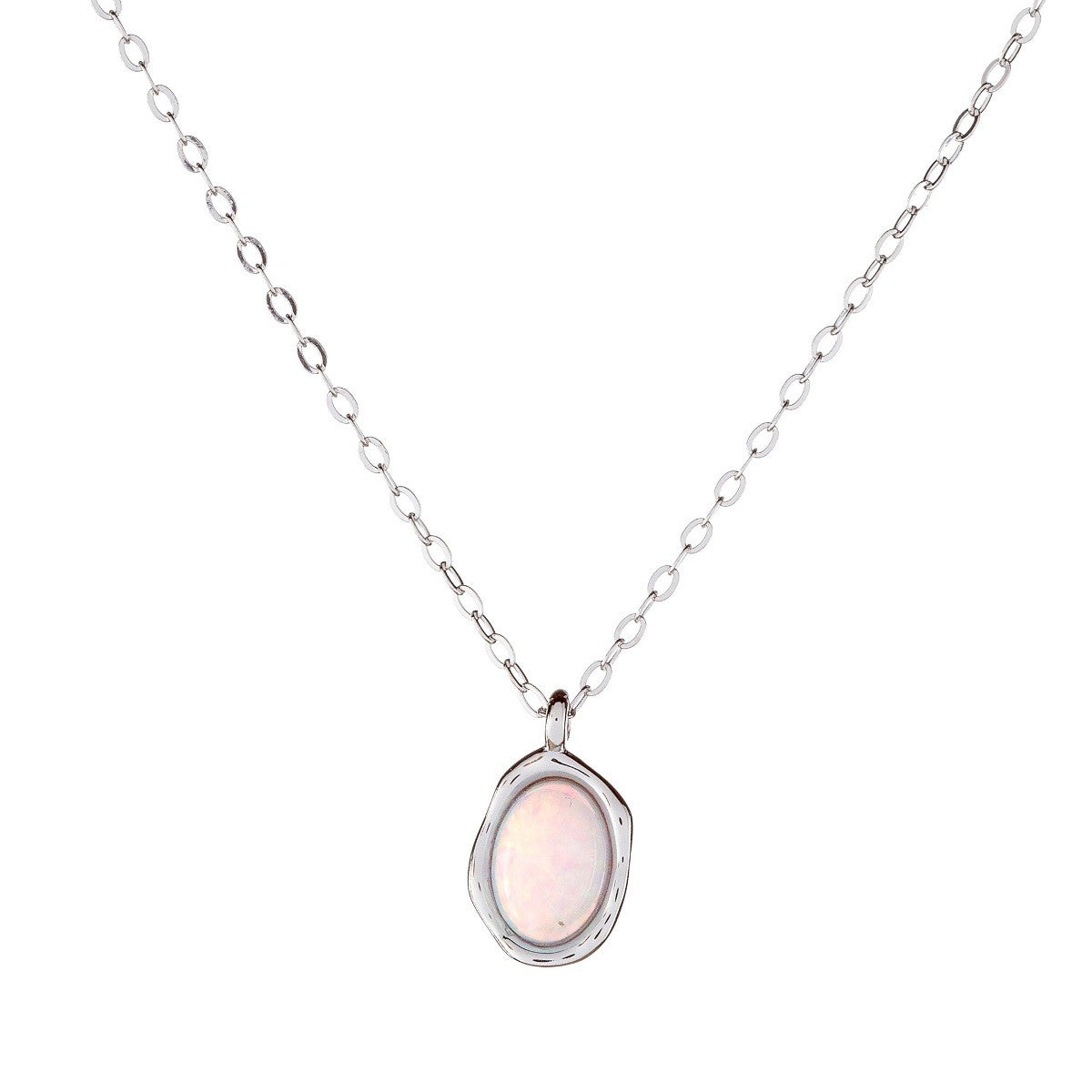 Sidabrinis rodžiuotas pakabukas su sintetiniu opalu ir grandinėle