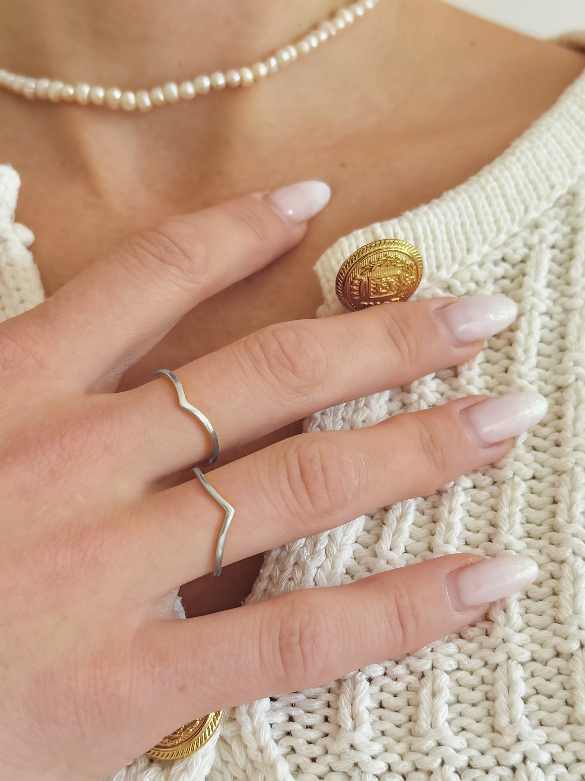 Subtilusis V formos dizainas suteikia lengvumo ir išraiškingumo, o derinamas su kitais žiedais atrodo dar įspūdingiau.