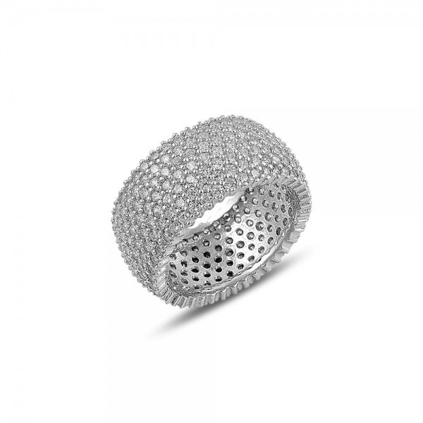 Sidabrinis rodžiuotas žiedas su 7 eilėmis cirkonių