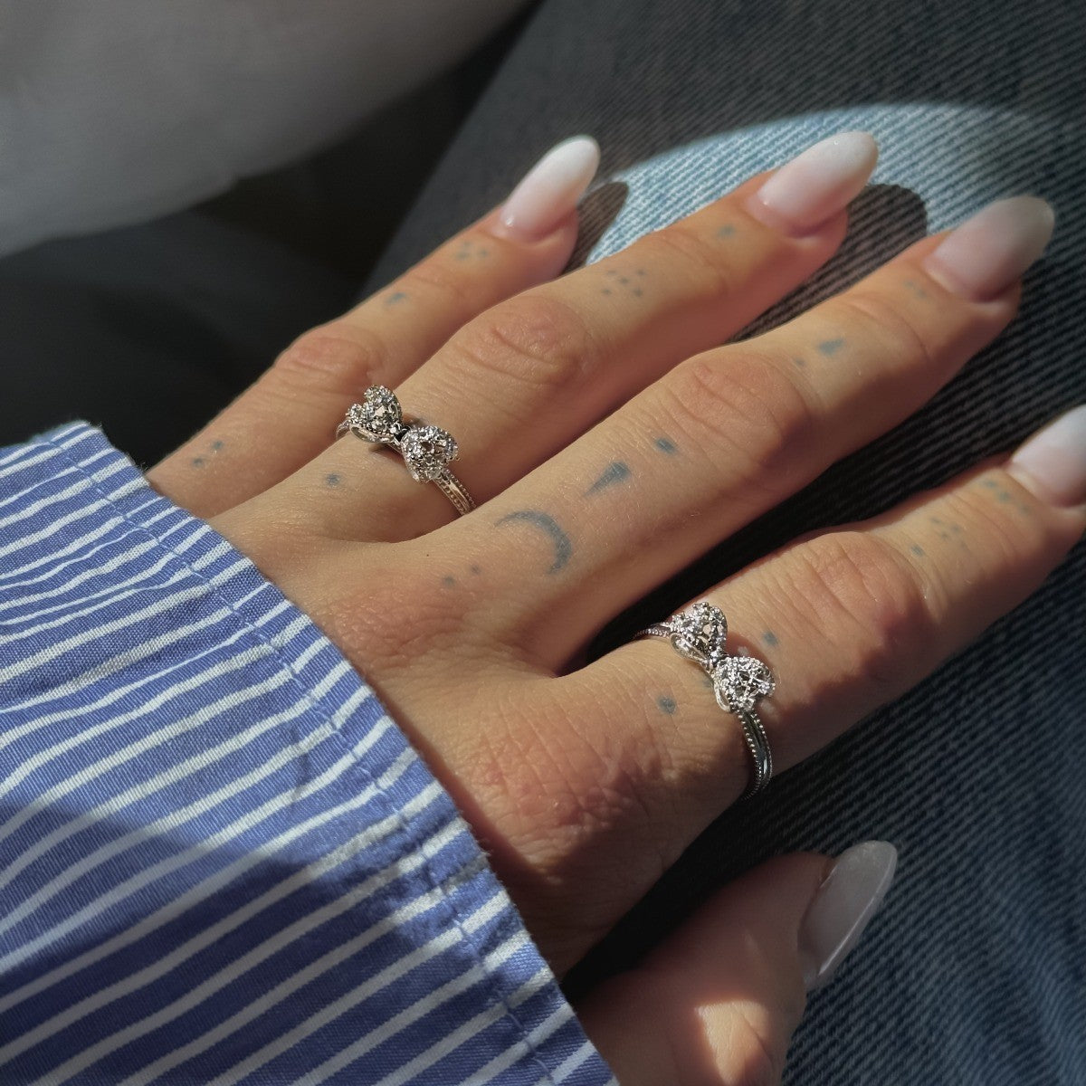 Sidabrinis rodžiuotas žiedas su bantuku