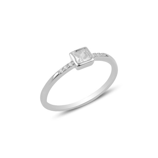 Sidabrinis rodžiuotas žiedas su cirkonio akute