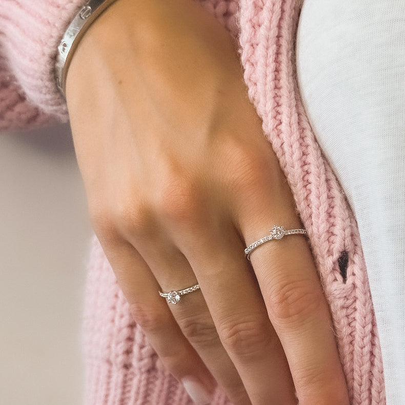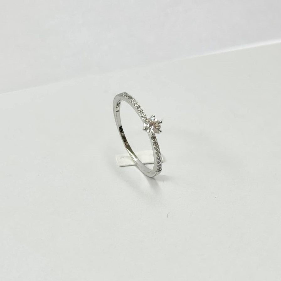 Sidabrinis rodžiuotas žiedas su cirkonio akute