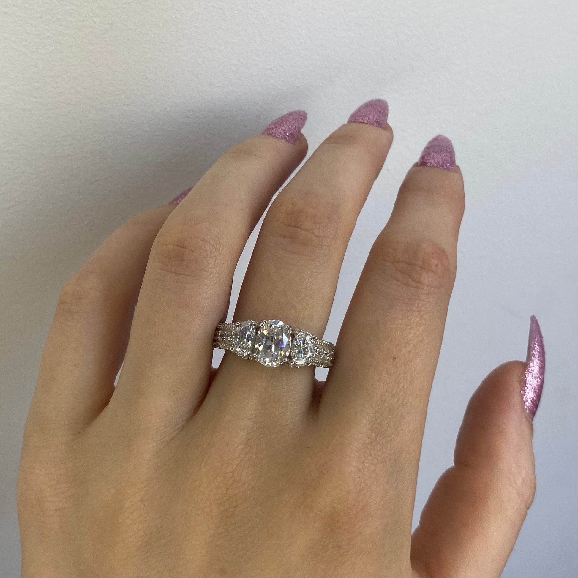 Sidabras dengtas rodžiu (platinos grupės metalas). Sidabro praba: 925.