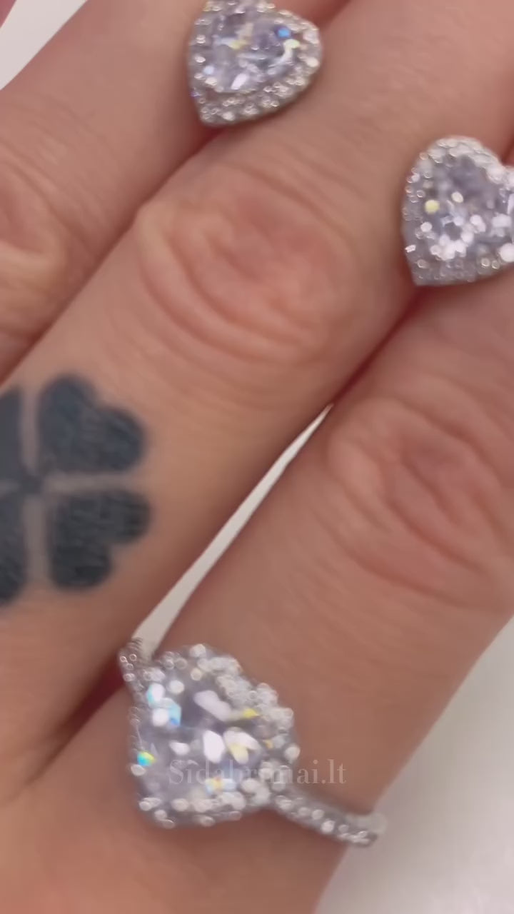 Sidabrinis rodžiuotas žiedas su cirkonio širdele
