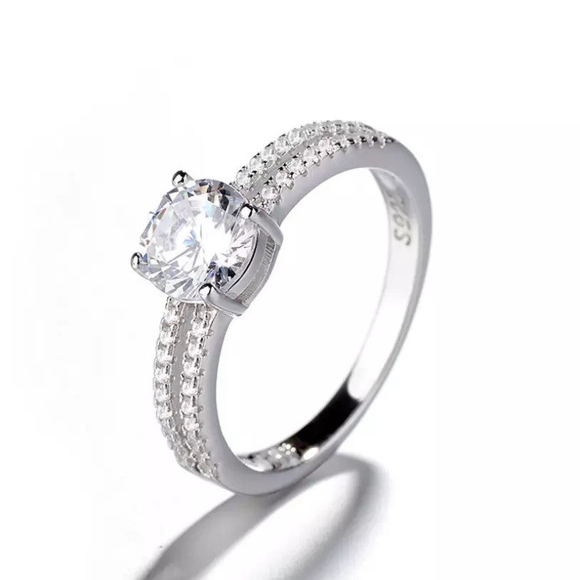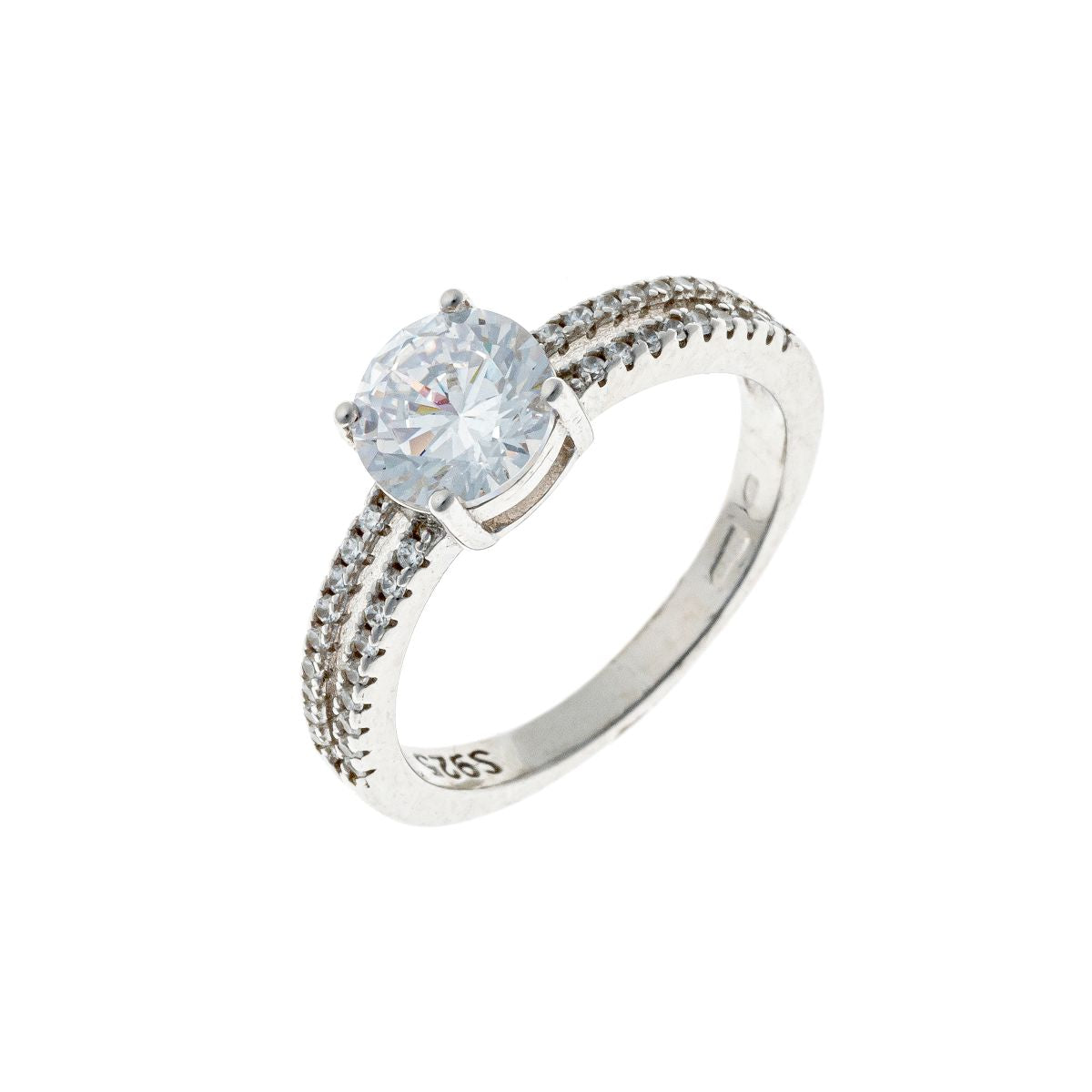 Sidabrinis rodžiuotas žiedas su dviejų eilių cirkoniais