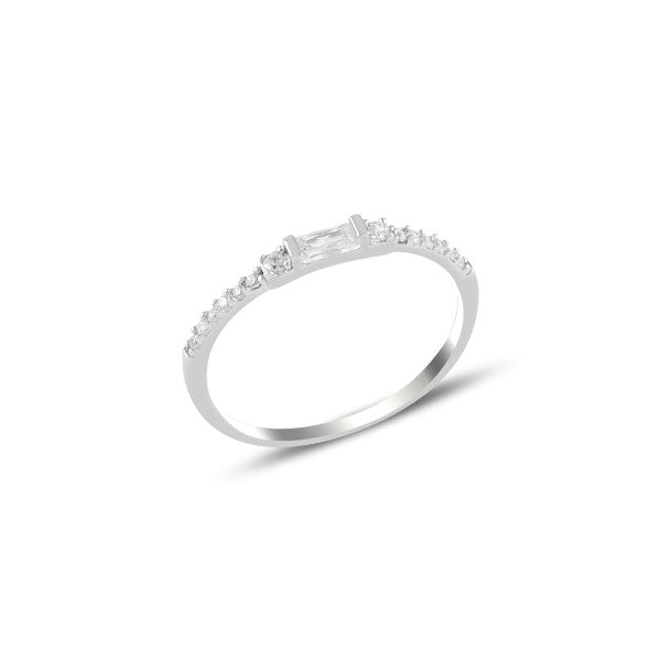 Sidabrinis rodžiuotas žiedas su pailgu cirkoniu ir cirkoniukais