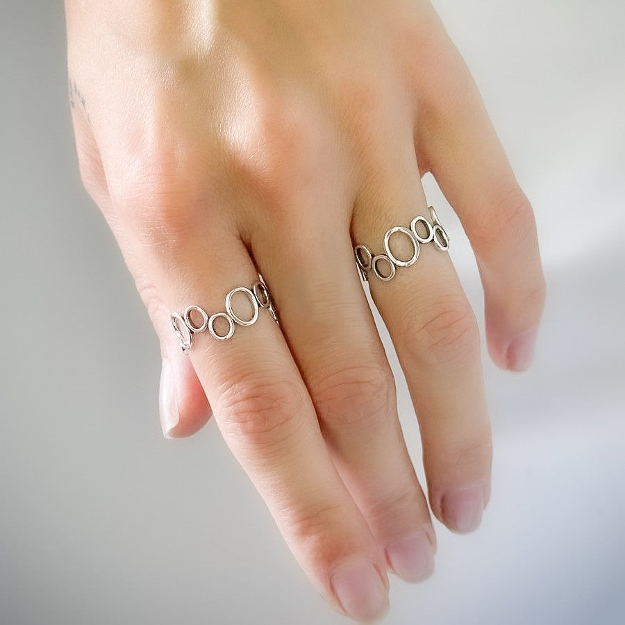Sidabrinis rodžiuotas žiedas su rutuliukais