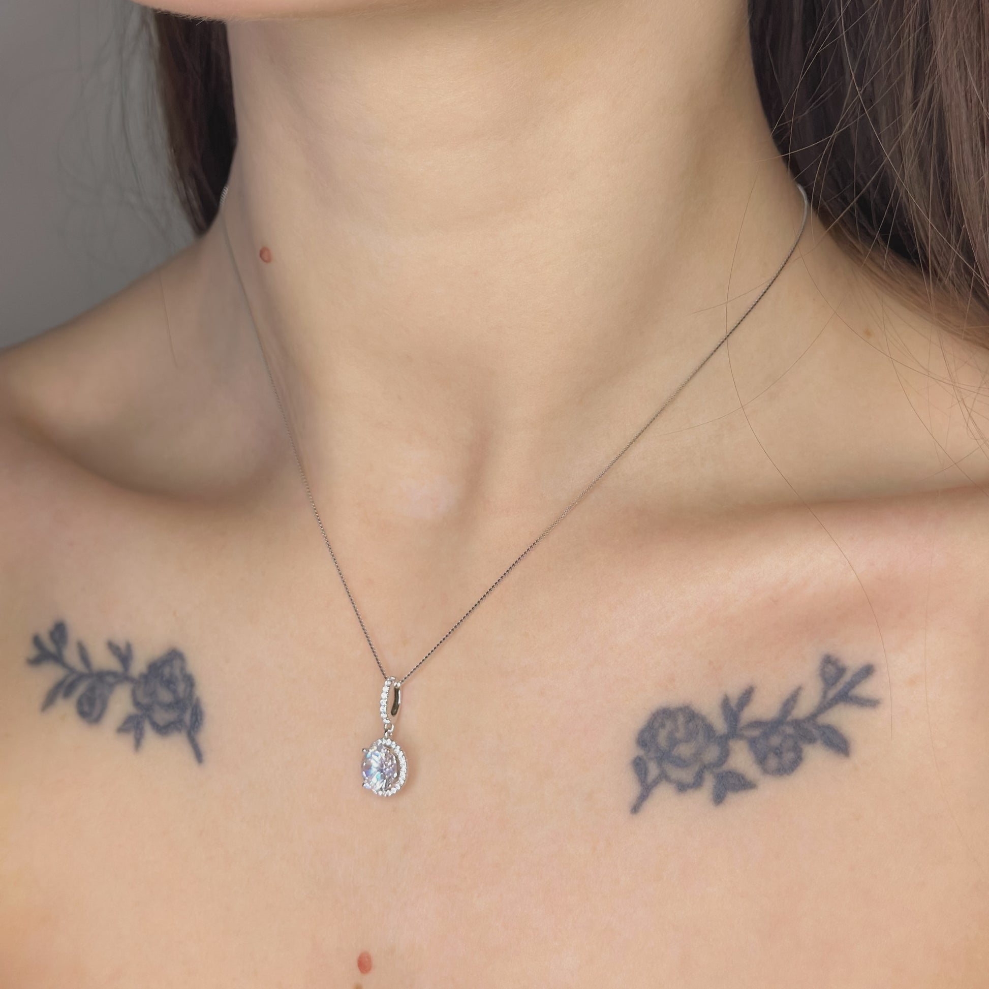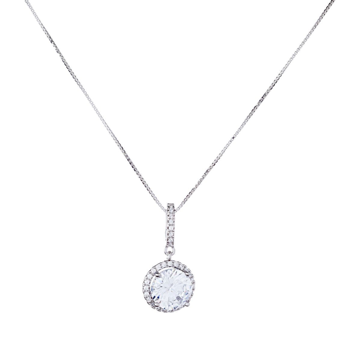 Sidabrinis rodžiuotas pakabukas su apvaliu cirkoniu ir grandinėle