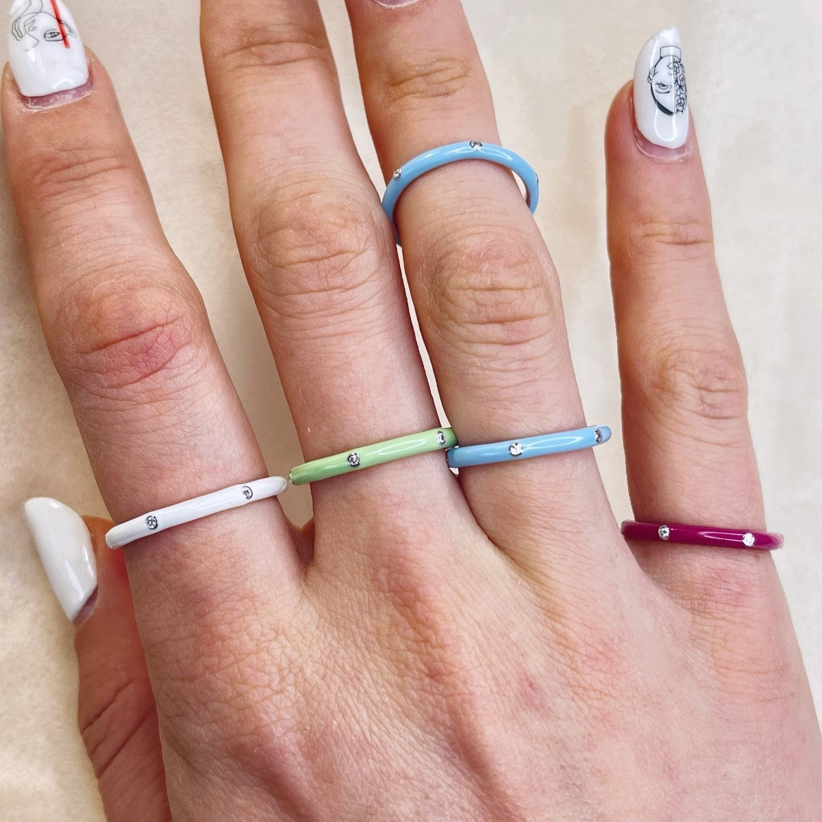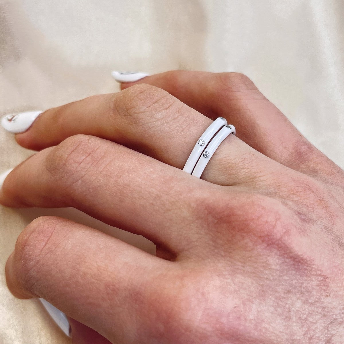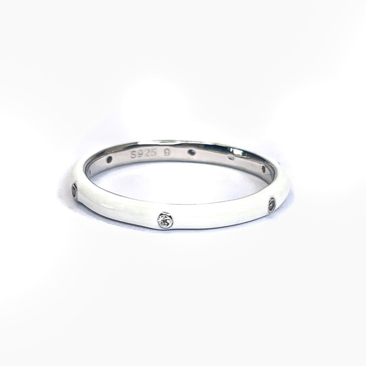 Sidabrinis žiedas su cirkoniu dengtas baltu emaliu