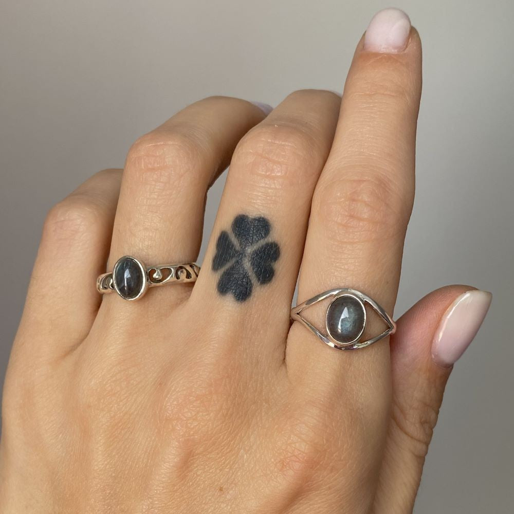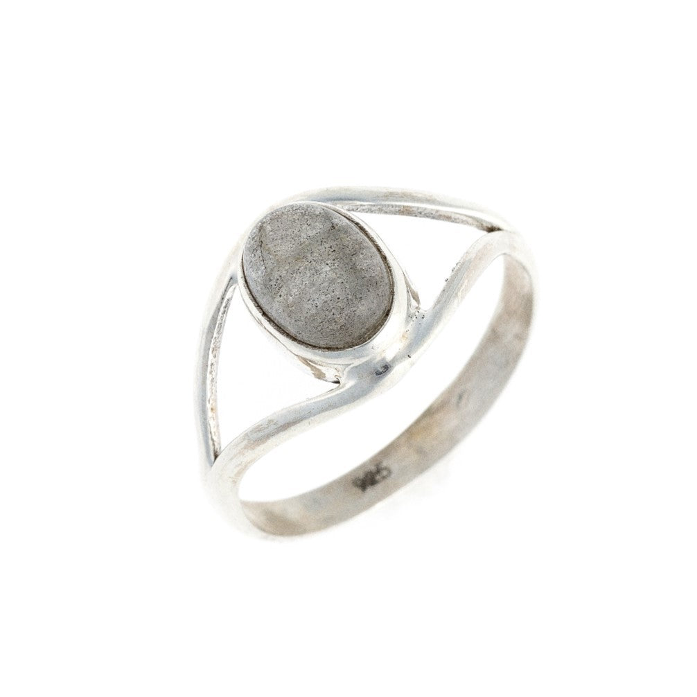 Sidabrinis žiedas su 8 x 6 mm labradorito akmeniu.