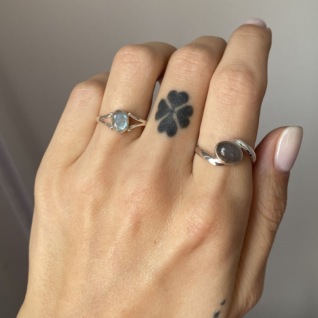 Sidabrinis žiedas su 8 x 6 mm labradorito akmeniu.