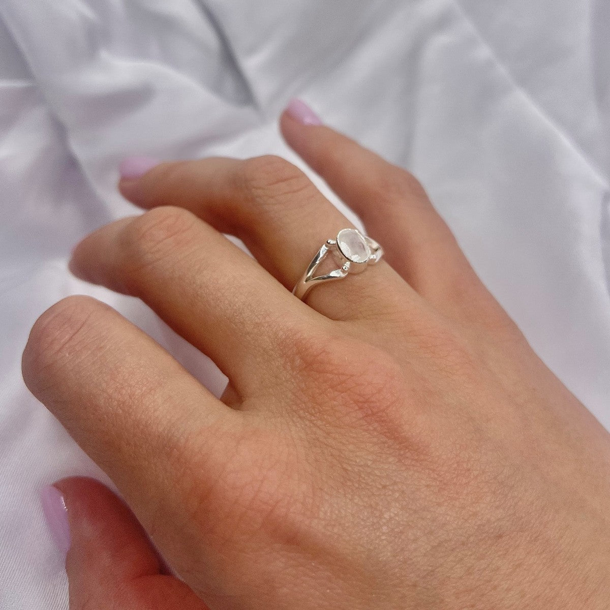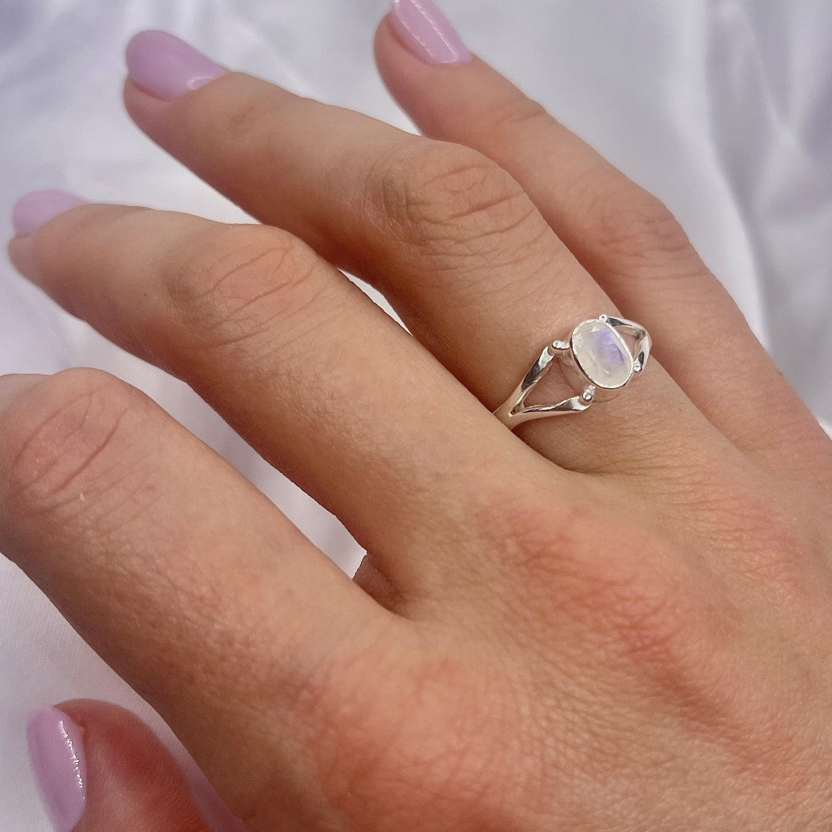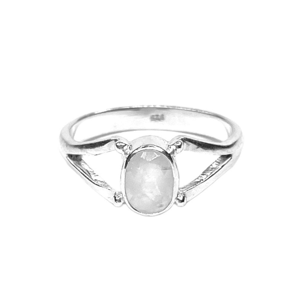 Sidabrinis žiedas su 6 x 8 mm mėnulio akmeniu.