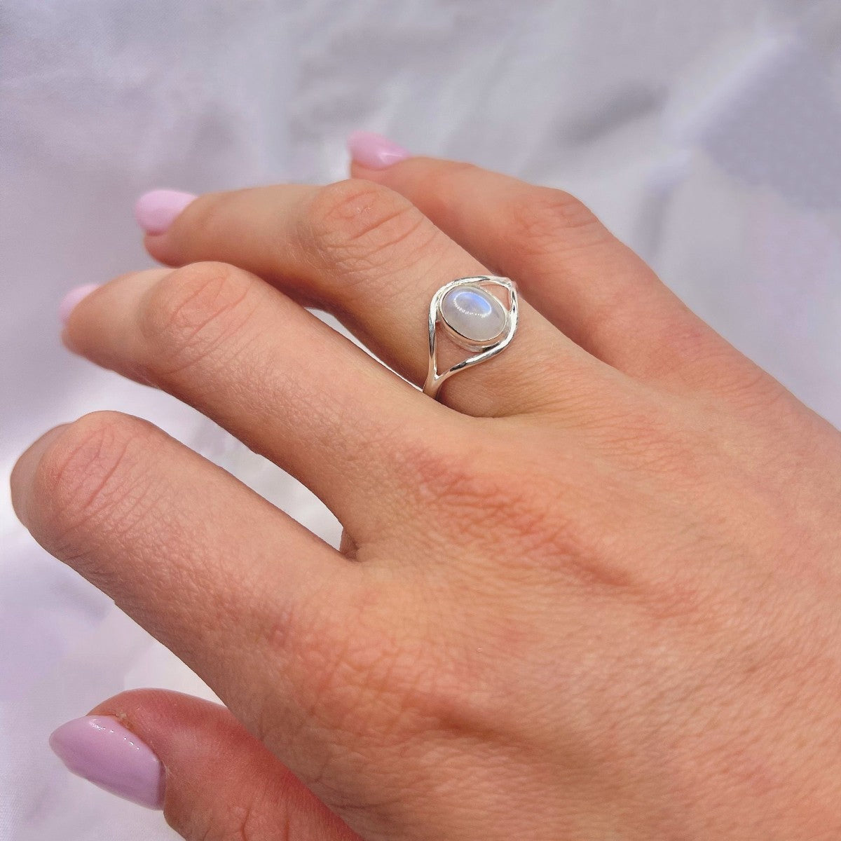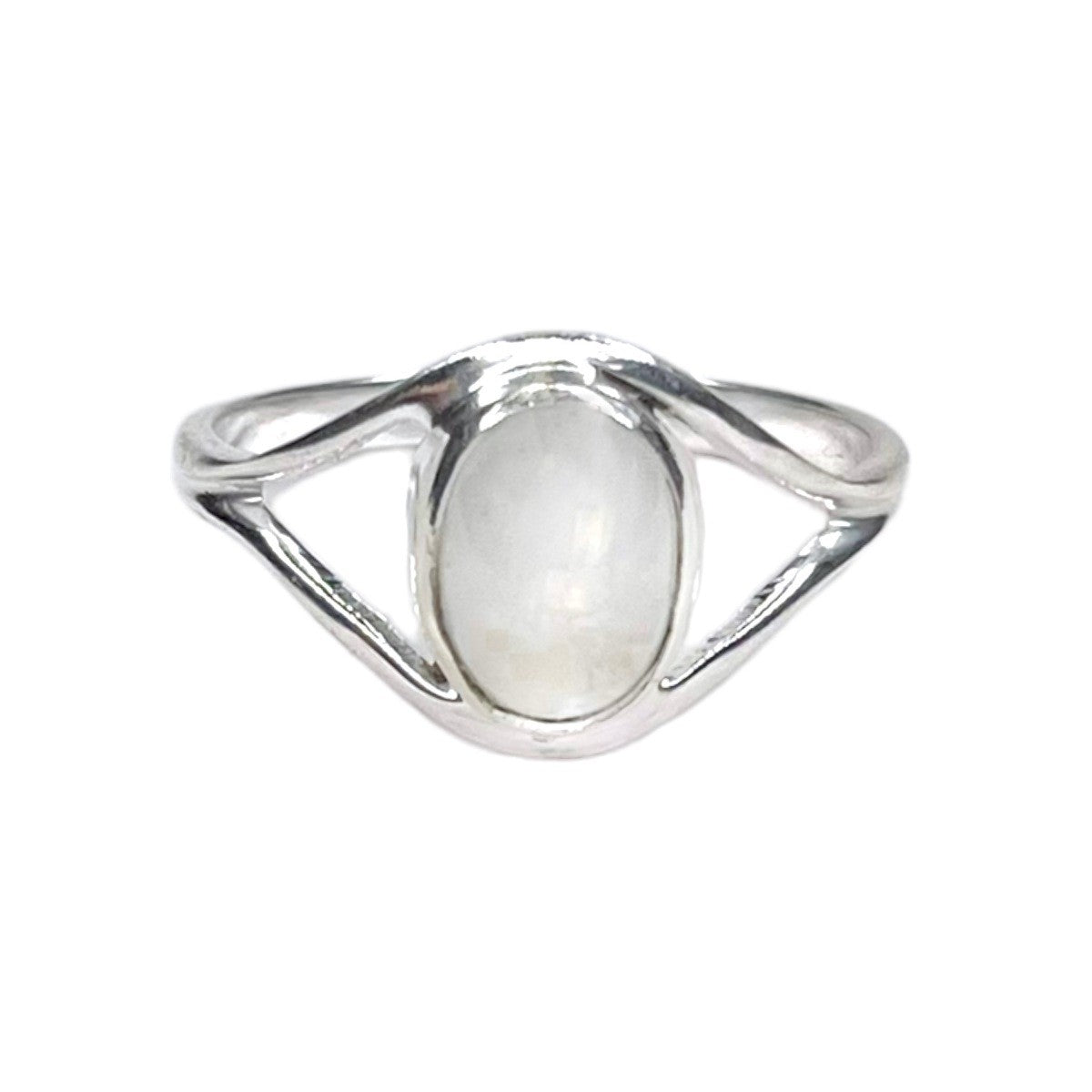 Sidabrinis žiedas su 7 x 9 mm mėnulio akmeniu.