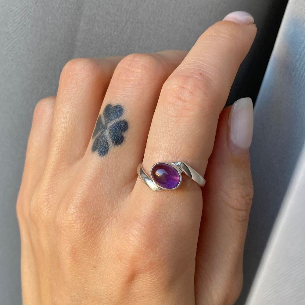 Sidabrinis žiedas su ovaliu ametistu