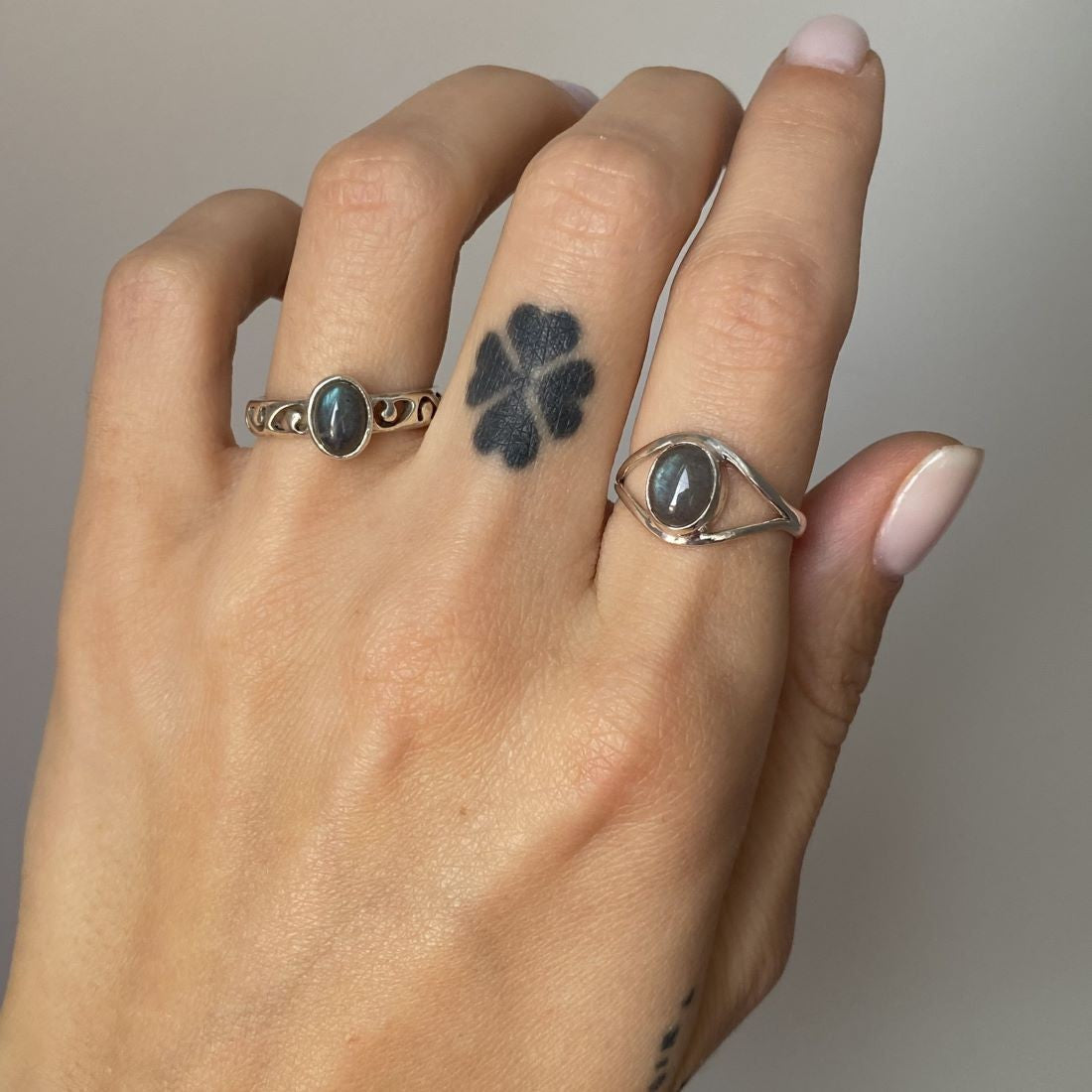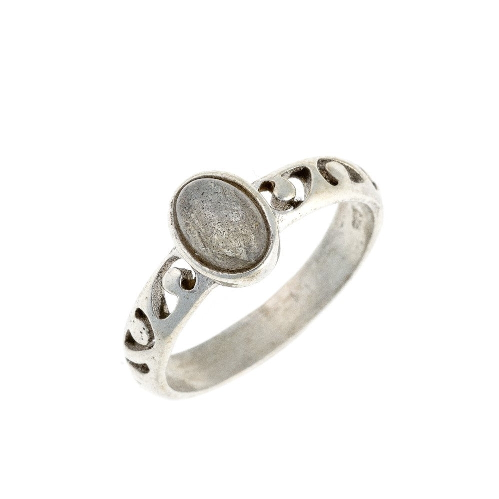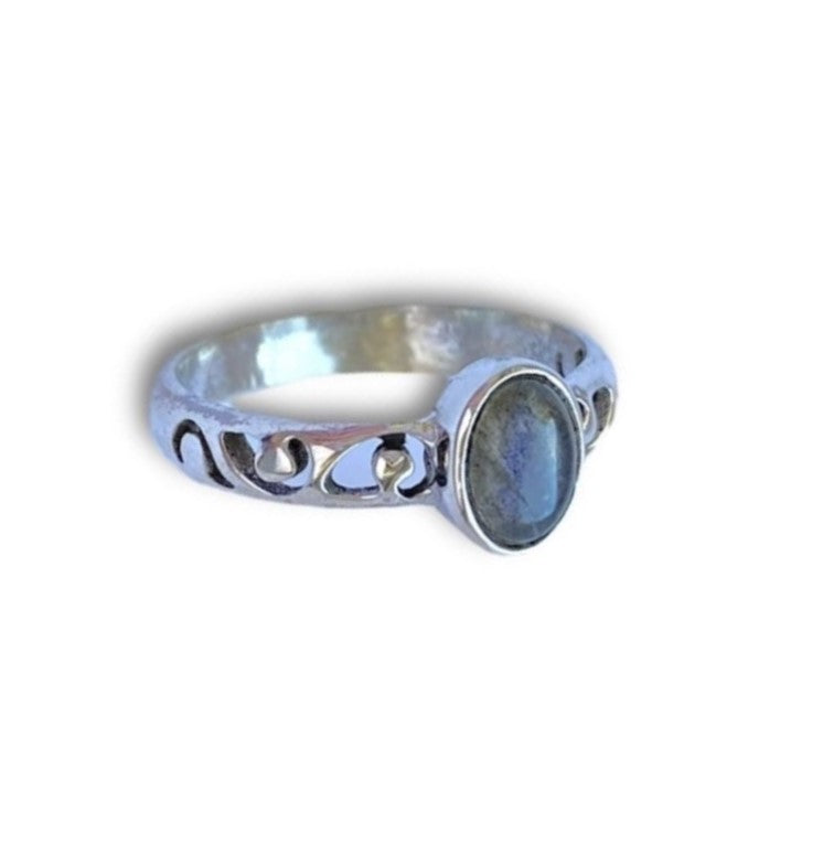 Sidabrinis žiedas su 7 x 5 mm labradorito akmeniu.