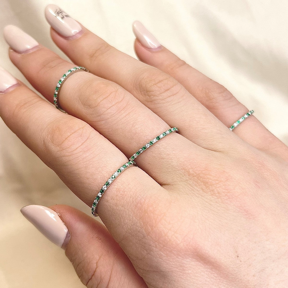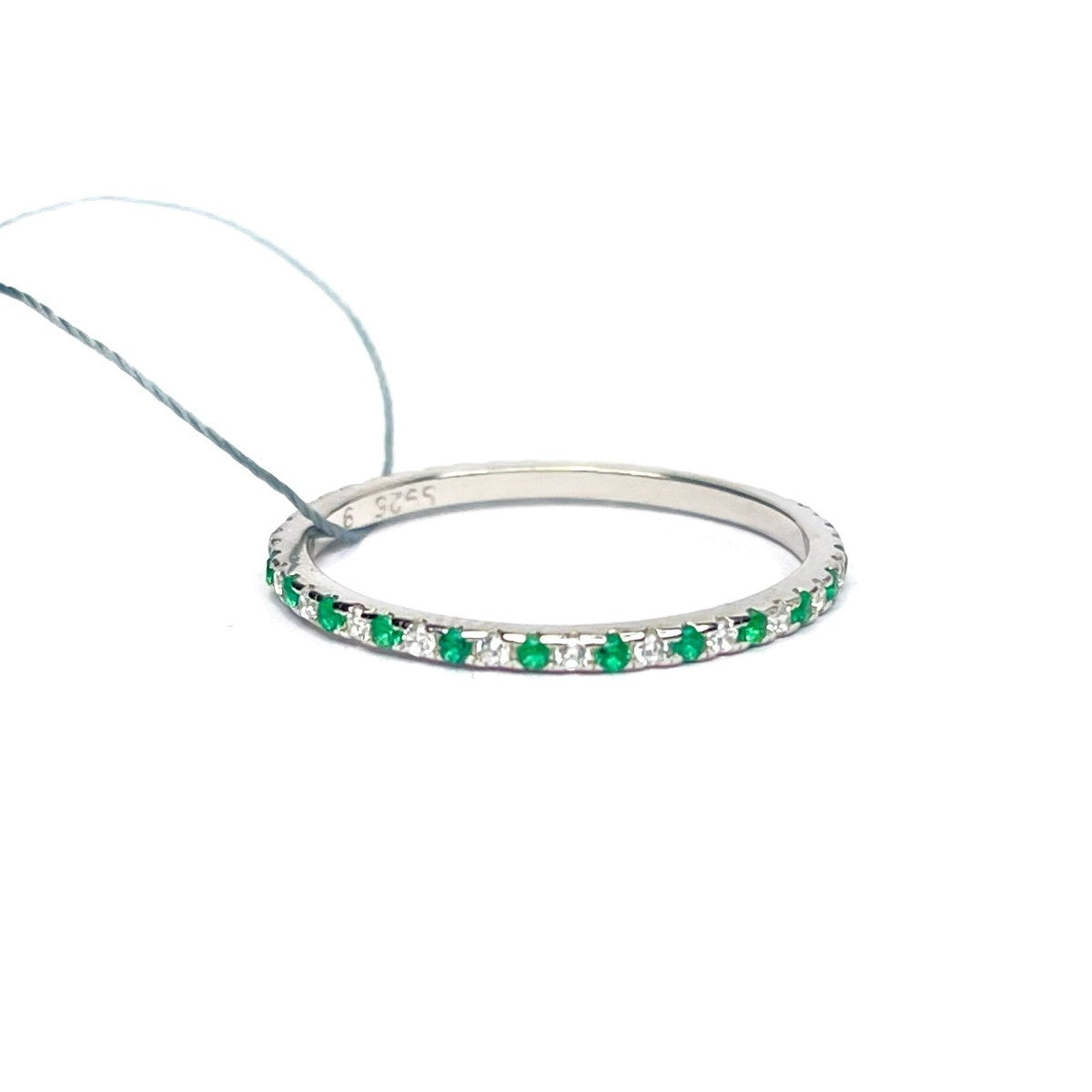 Sidabrinis žiedas su žaliais ir baltais cirkoniais