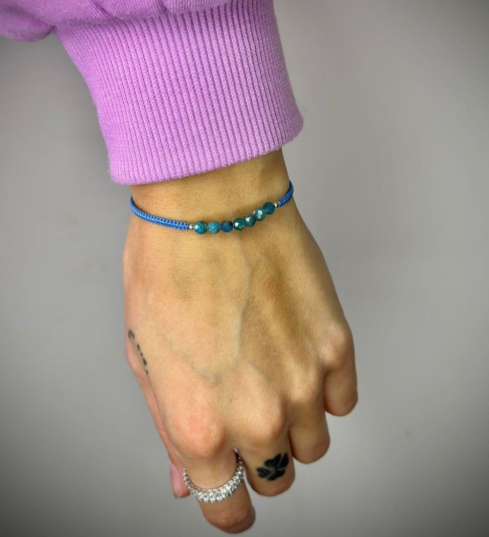 Siūlo apyrankė su apatito akmenukais