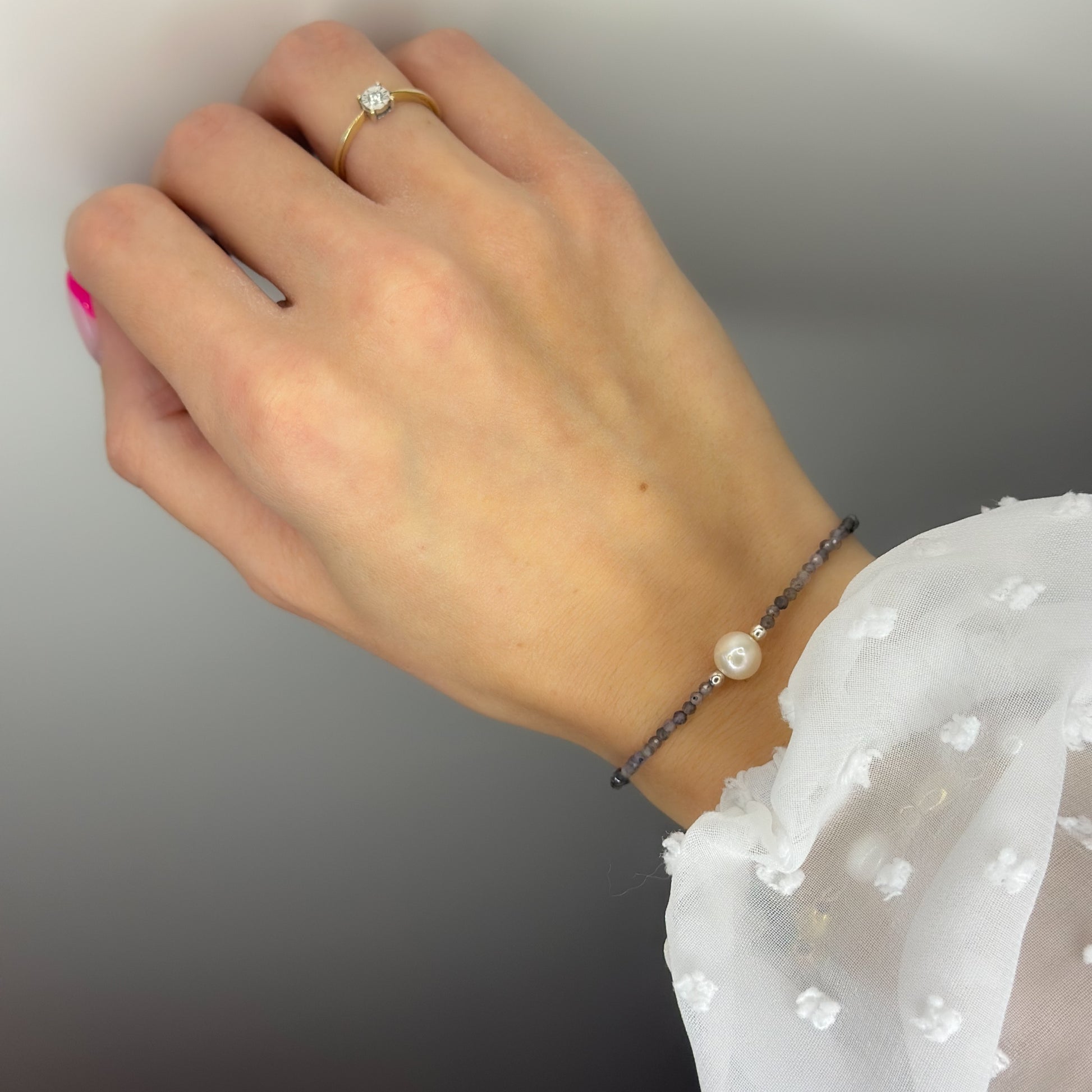 Siūlo apyrankė su perlu ir jolito akmenukais