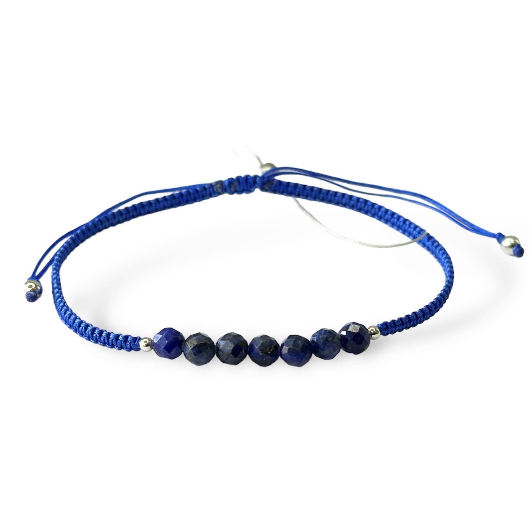 Siūlo apyrankė su sidabriniais karoliukais ir lazurito akmenukais