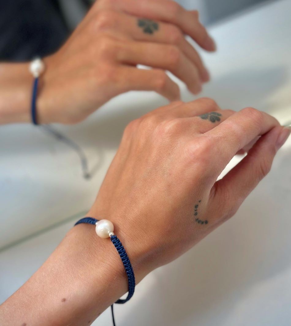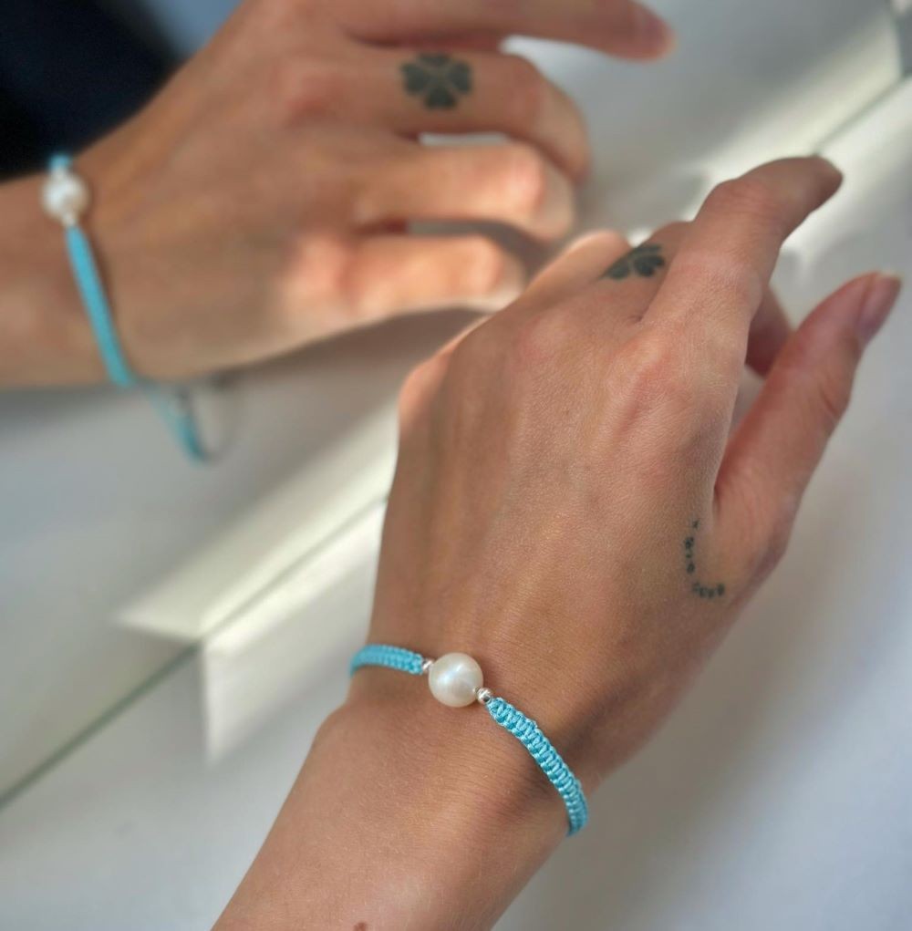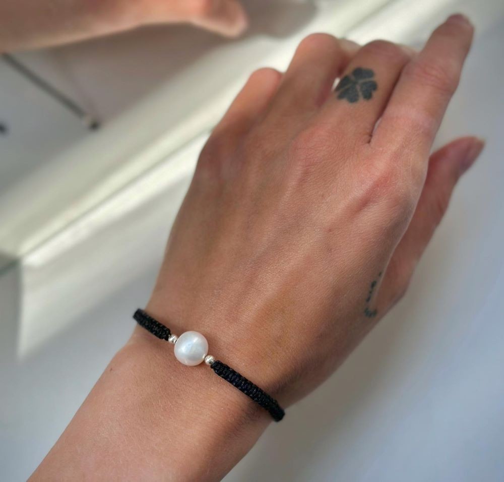 Siūlo apyrankė su sidabriniais karoliukais ir tikru perlu