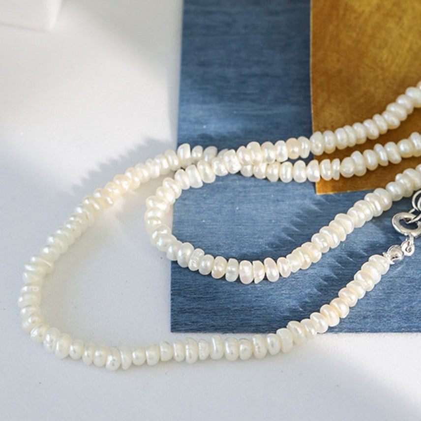 tikrų perlų vėrinys su sidabriniu užsegimu