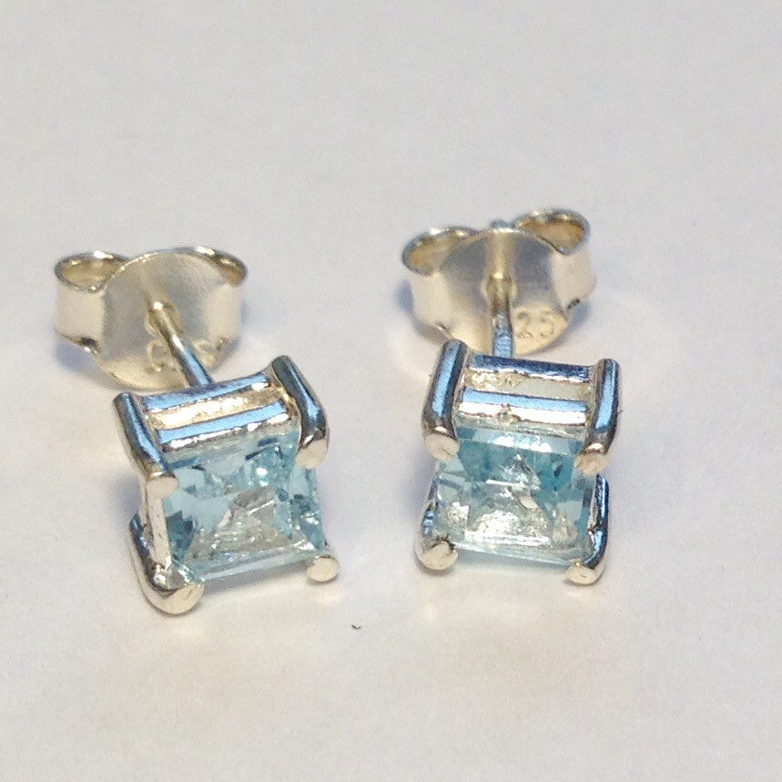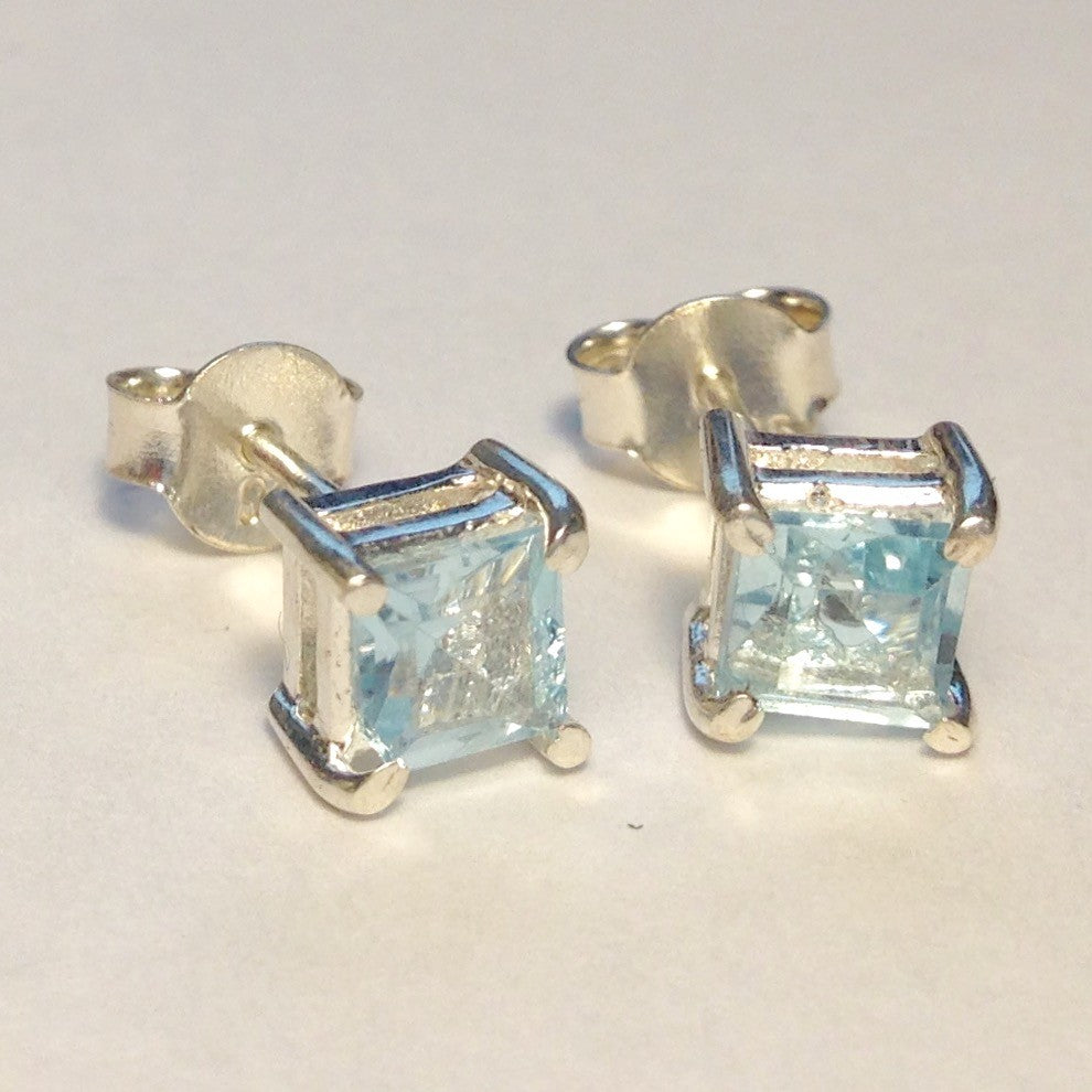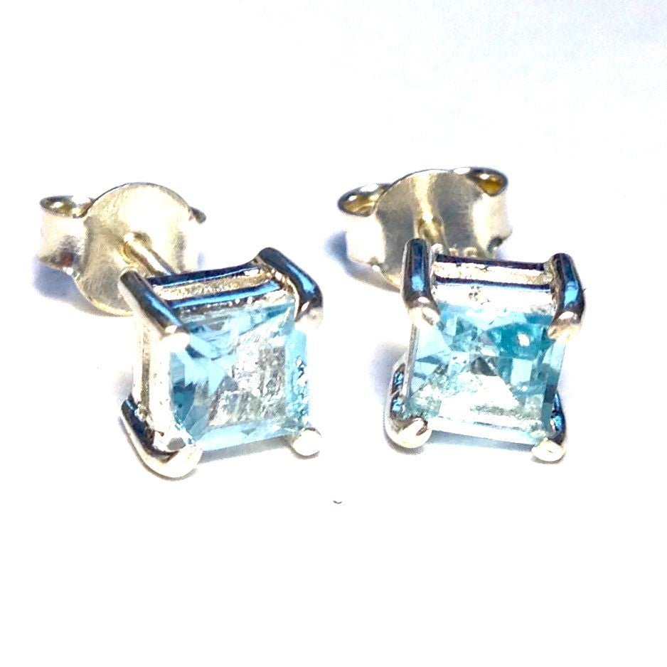 Sidabriniai auskarai su kvadrato formos topazo kristalu
